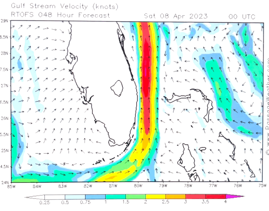 Expect a northward Gulf Stream set â plan to steer some degrees south of a direct line to counter the set. The Stream commonly runs 1â3+ knots (occasionally more); check current forecasts before departure. National Ocean Service+1