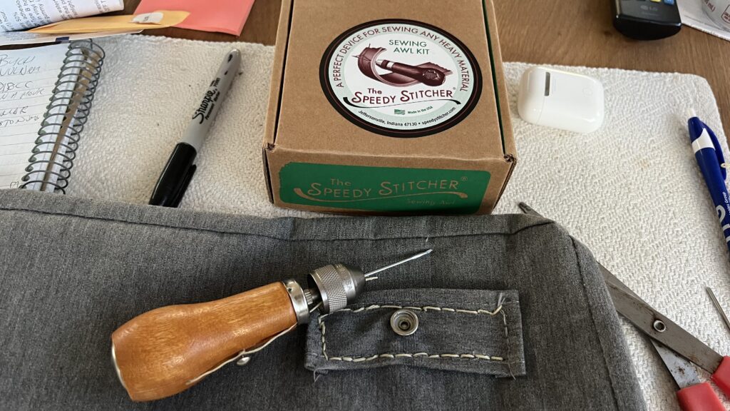 The Speedy Stitcher is perfect for heavy-duty repairs when dragging out the full sewing machine feels like overkill or the fabric shape is impossible to get under the machine needle. It stitches through canvas, leather, webbing, vinyl, and even thick sailcloth. Whether you’re fixing a dinghy handle, patching a dodger seam, or repairing a bag strap, this compact awl kit is powerful, simple, and incredibly handy to keep aboard.