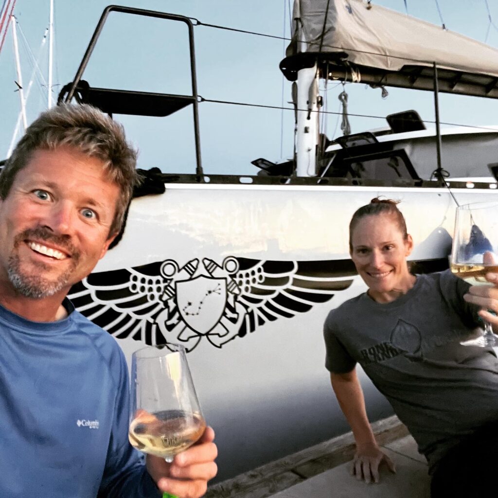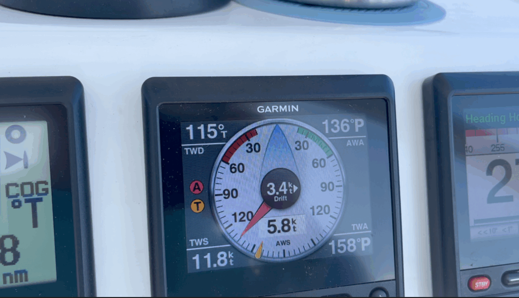 Kevin, never one to miss a punchline, replied, “Yeah, not only are we sailing, but we’re regenerating 1 – 1.5 kilowatts an hour per engine with our OceanVolt motors.” (ah, great right, just wait…famous First words!)