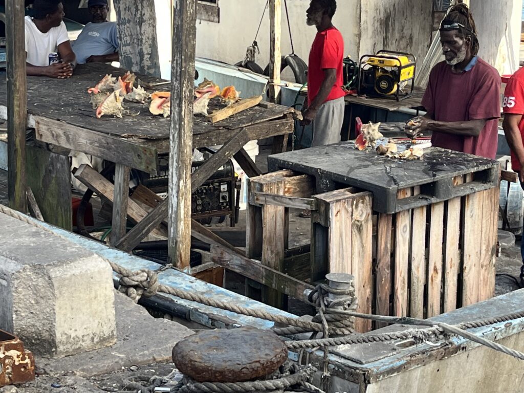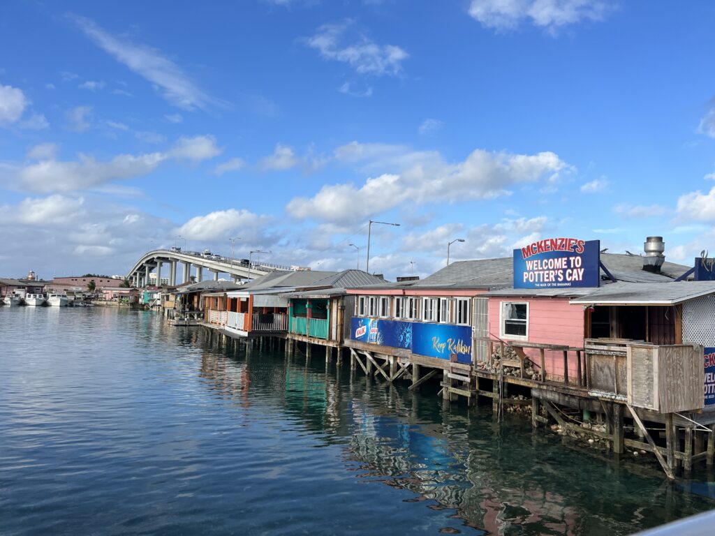 Potter’s Cay Wharf – This area is worth a walk-through at least once for the experience. We parked our dinghy at Bay Street Marina ($20/day!!!). Below the Sir Sidney Poirier Bridge that links downtown Nassau to Paradise Island and the famous Atlantis Resort lies a ramshackle of Conch shacks, fishing boats, and fruit stalls. It feels like real, raw Nassau grit with conch and fish dishes prepared a million different ways. We skipped the raw conch offered to us from the gentlemen shucking the shells, but the prepared conch salad and cheap beers were a win.