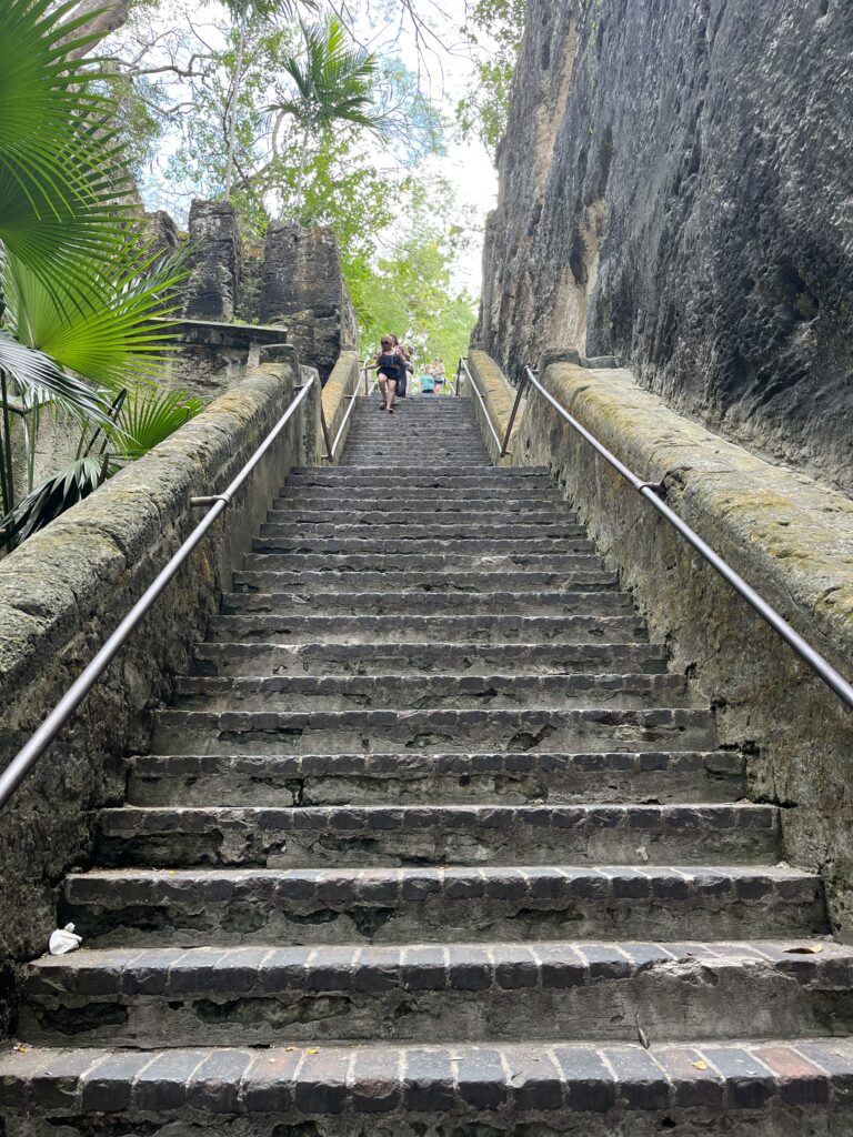 Queen’s Staircase & Fort Fincastle – A 15 minute walk from the beach you will find 66 limestone steps carved by slaves in 1793. The purpose to create a short cut from Fort Fincastle to Nassau city, later named after Queen Victoria, who reigned Britain from 1837-1901. History underfoot. Pun Intended. The fort itself was built in 1793 by Lord Dunmore, the governor of the Bahamas in the late 1700s, to protect Nassau from pirates. He named it after his second title, Viscount Fincastle. The water tower remains.